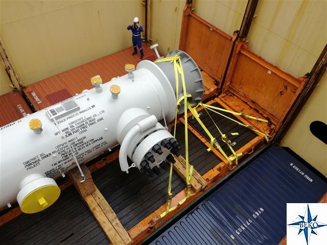 Op 9 mei hebben we het eerder getransporteerde vat van 55 ton in Genua geladen a/b van de MV Conti Cortesia met eindbestemming Qingdao China.